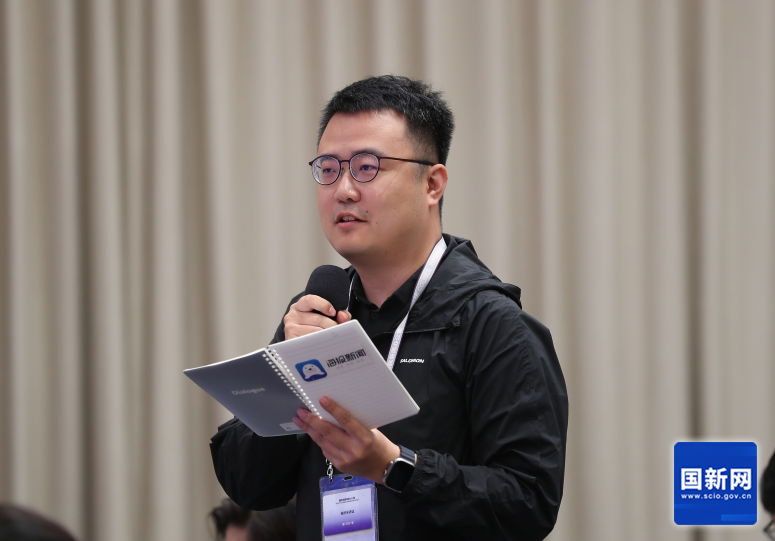 国务院新闻办公室于2025年9月16日(星期二)上午10时举行“高质量完成‘十四五’规划”系列主题新闻发布会,请农业农村部部长韩俊、农业农村部副部长张兴旺、农业农村部副部长麦尔丹·木盖提介绍“十四五”时期农业农村发展成就,并答记者问。图为海报新闻记者提问。刘健 摄